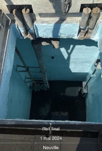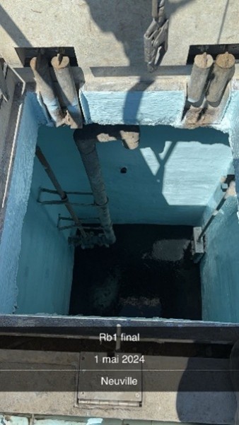 Pour redonner une seconde vie à ces structures, Soleno Service a déployé sa méthode éprouvée de réhabilitation par projection d’époxy. Après une préparation méticuleuse des surfaces (nettoyage, décontamination et décapage), un revêtement époxy haute performance a été appliqué sur les parois intérieures de chaque ouvrage. Cette solution forme une barrière protectrice continue, étanche et résistante aux environnements les plus corrosifs.